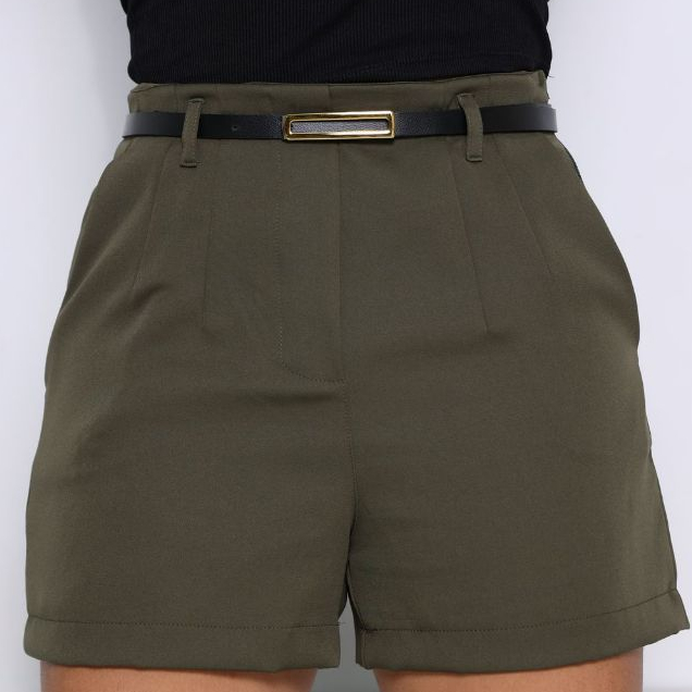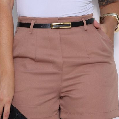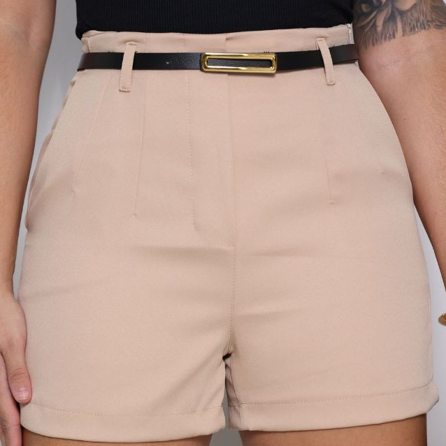 short feminina alfaiataria lizo com cinto zíper lateral bolsos laterais verão 2026