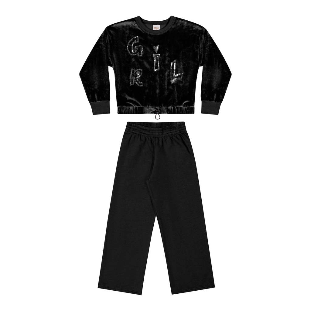 Conjunto Infantil Menina Blusão Plush Elian Preto