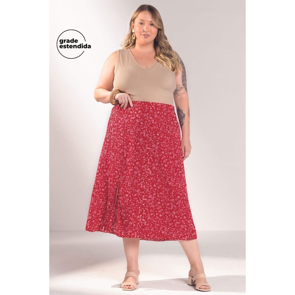 Saia Feminina Floral Miudo Marialícia Rosa