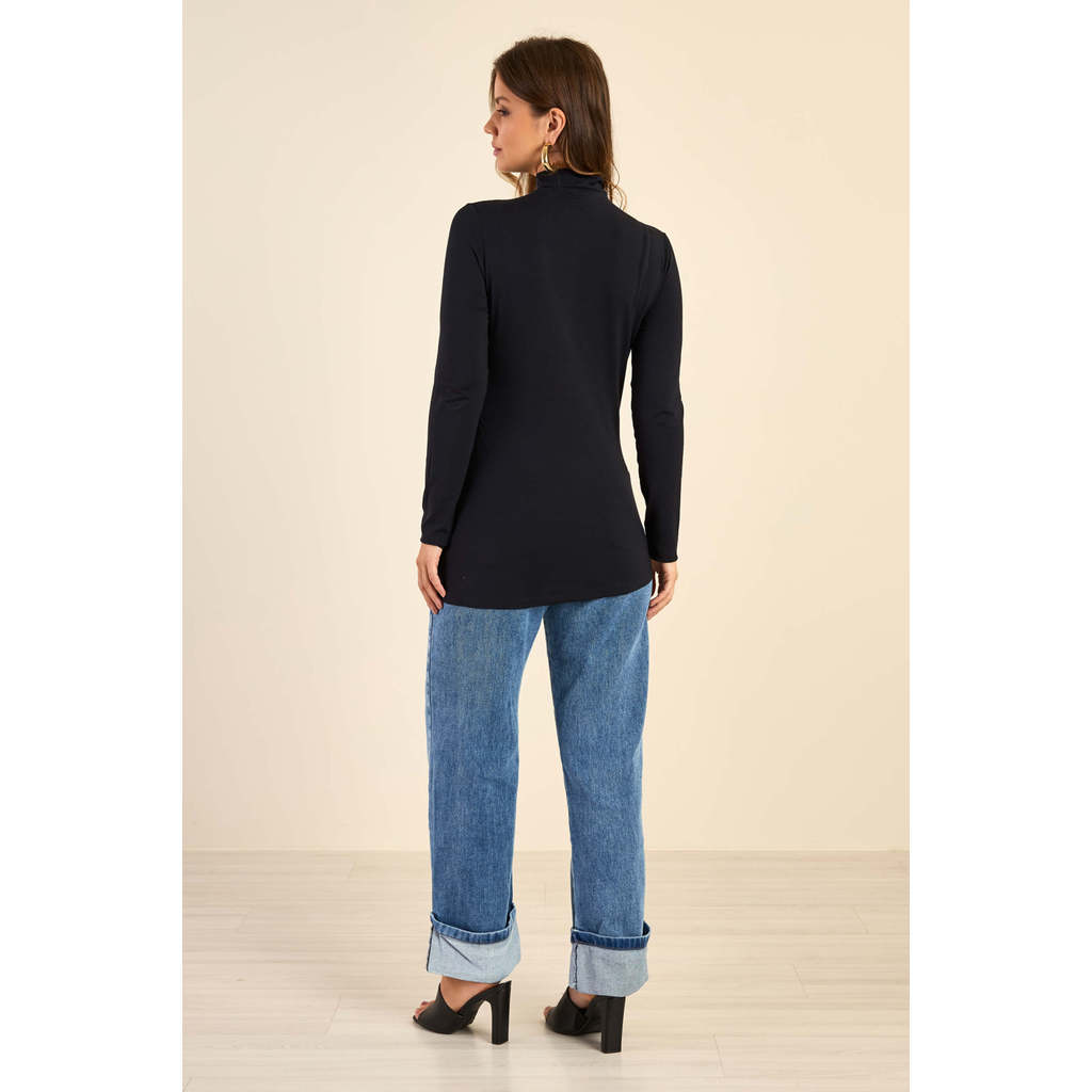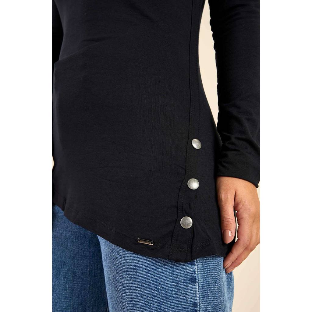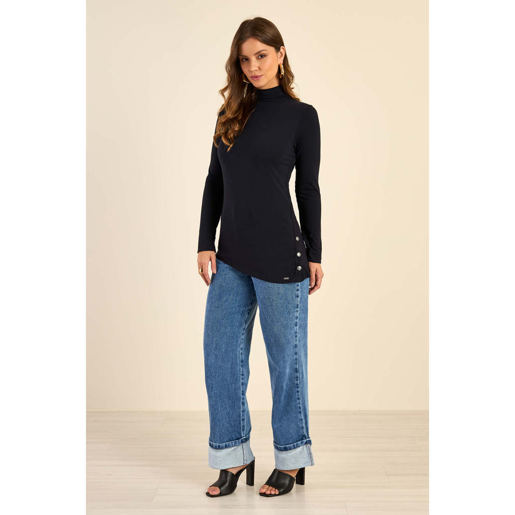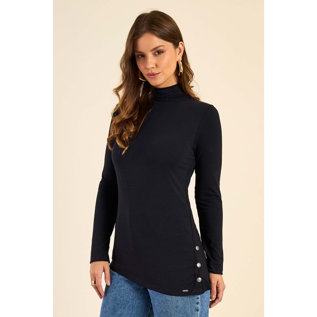 Blusa Feminina Assimétrica Com Botões Marialícia Preto