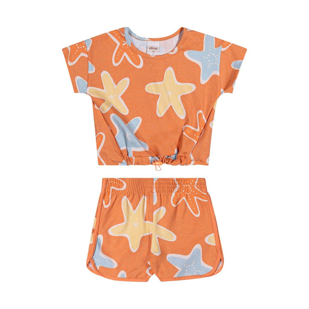 Conjunto Curto Infantil Menina Estrela-do-Mar Elian Laranja