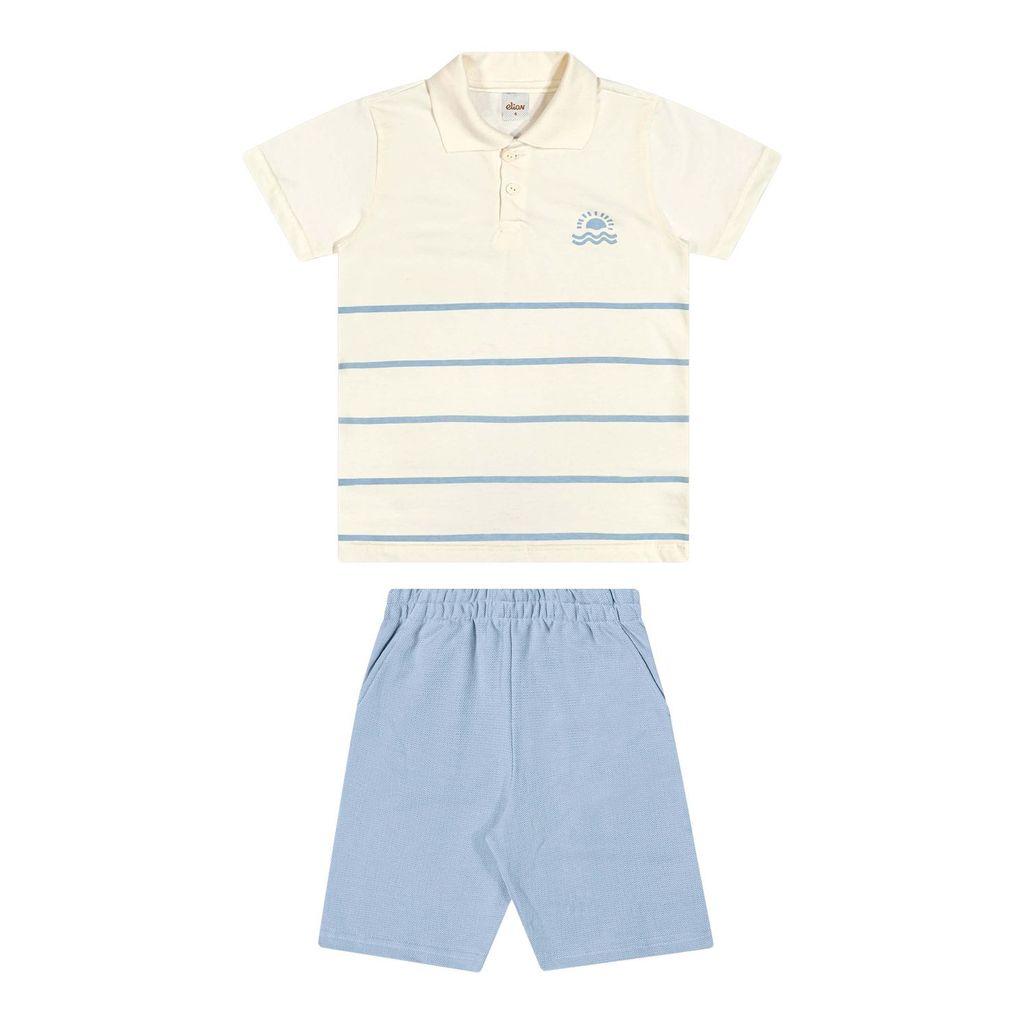 Conjunto Infantil Menino Polo Listrado Elian Bege