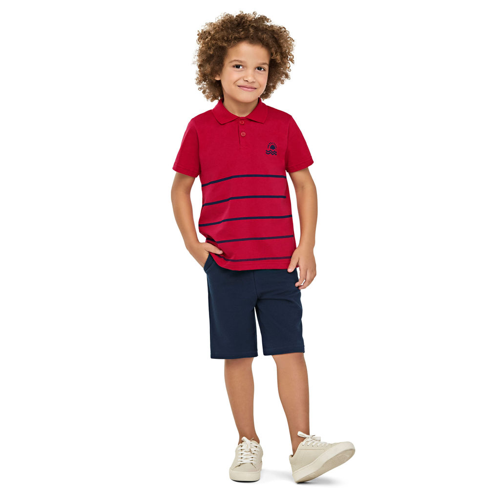 Conjunto Infantil Menino Polo Listrado Elian Vermelho