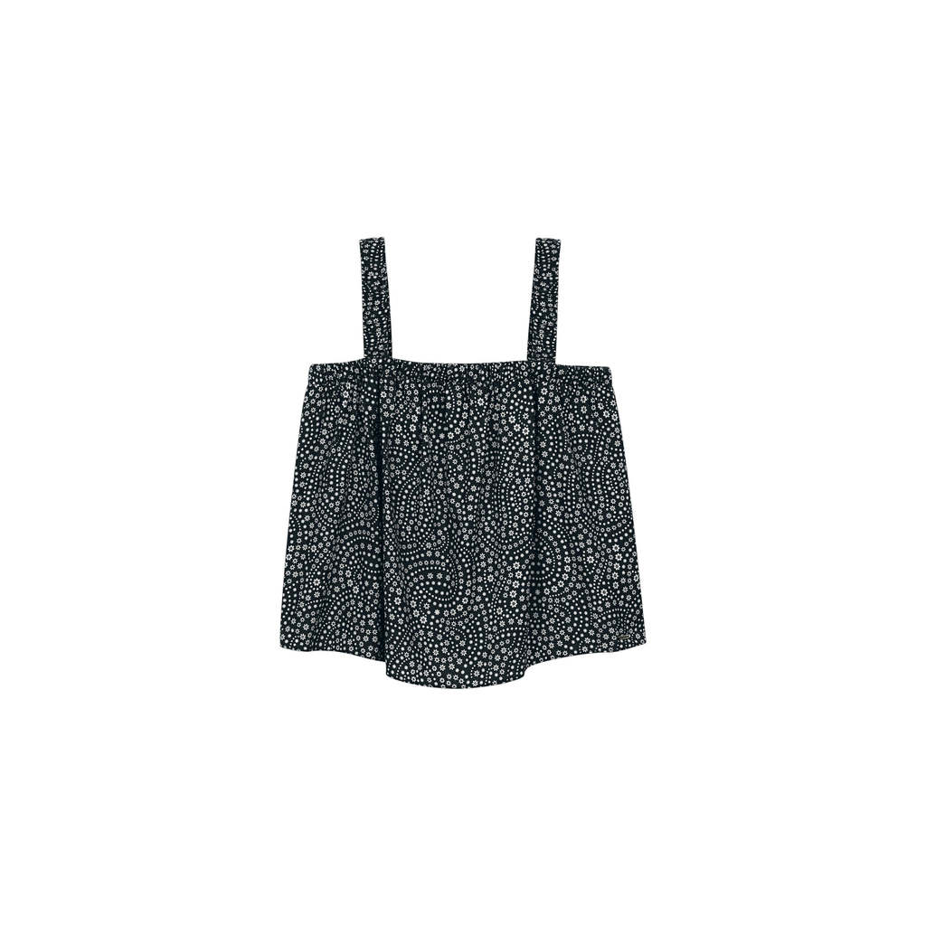 Regata Feminina Ampla Floral Marialícia Preto