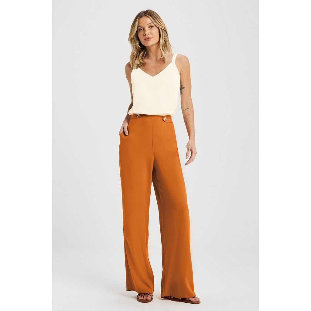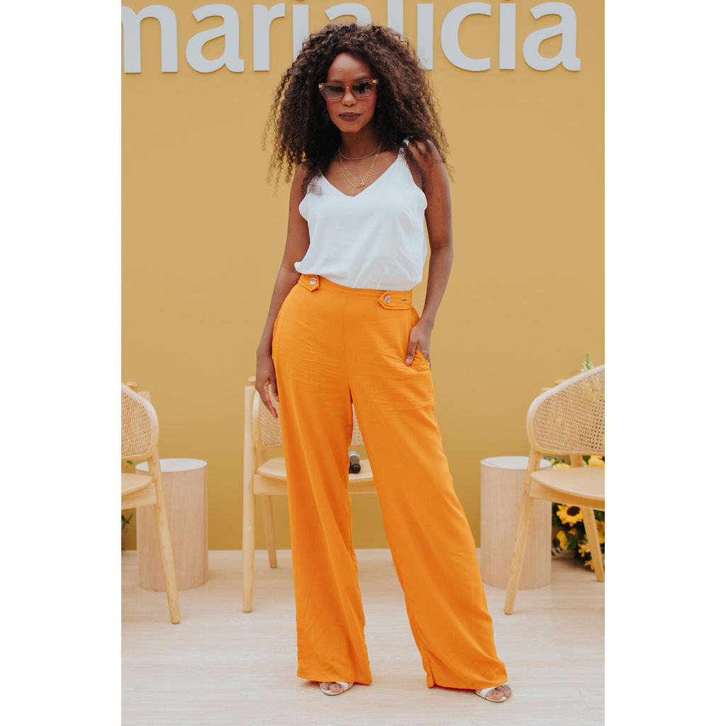 Calça Feminina Pantalona Com Botões Marialícia Laranja