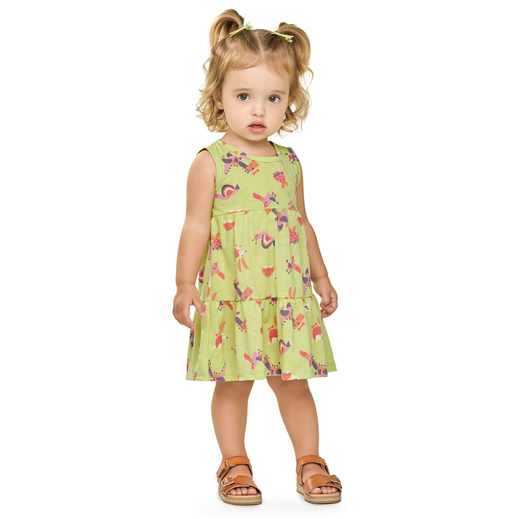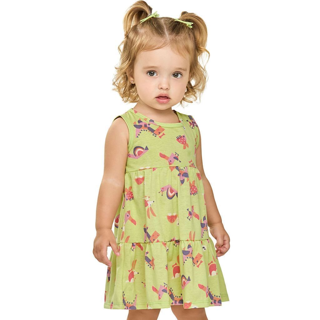 Vestido Bebê Menina Bichinhos Coloridos Elian Verde