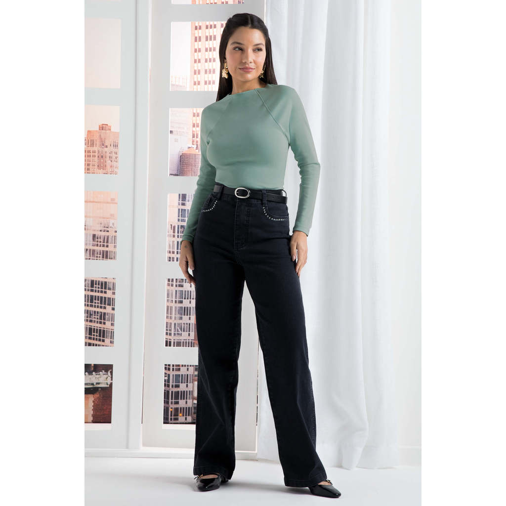 Blusa Feminina Manga Longa Suedine Marialícia Verde