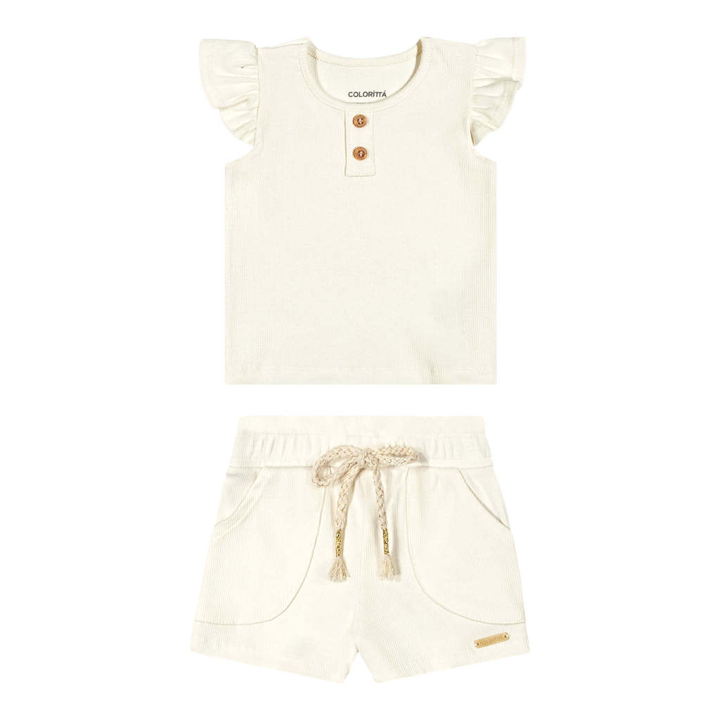 Conjunto Bebê Menina Ribana Com Babados Colorittá Bege