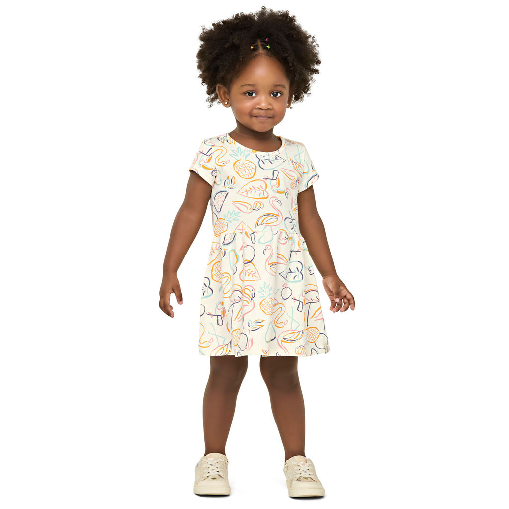 Vestido Infantil Menina Desenho Tropical Elian Bege