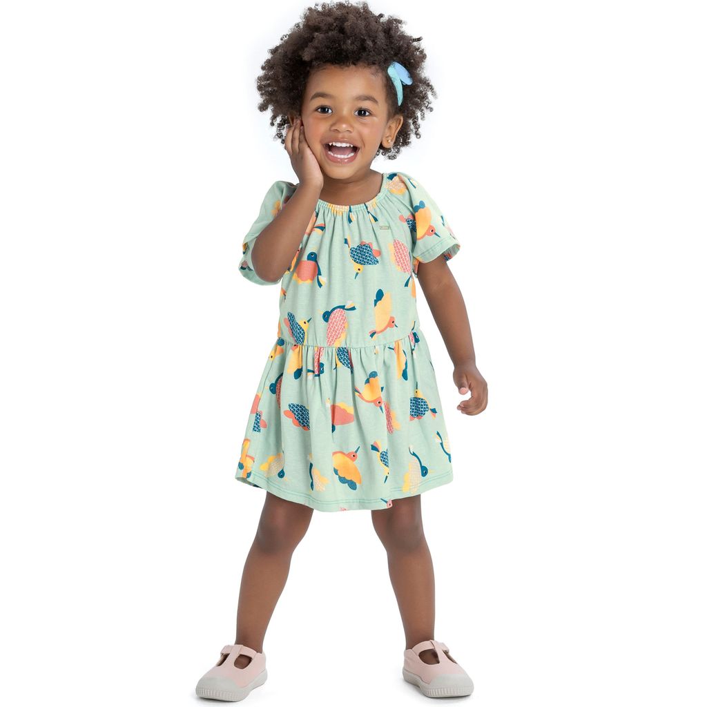 Vestido Infantil Menina Pássaros Elian Verde