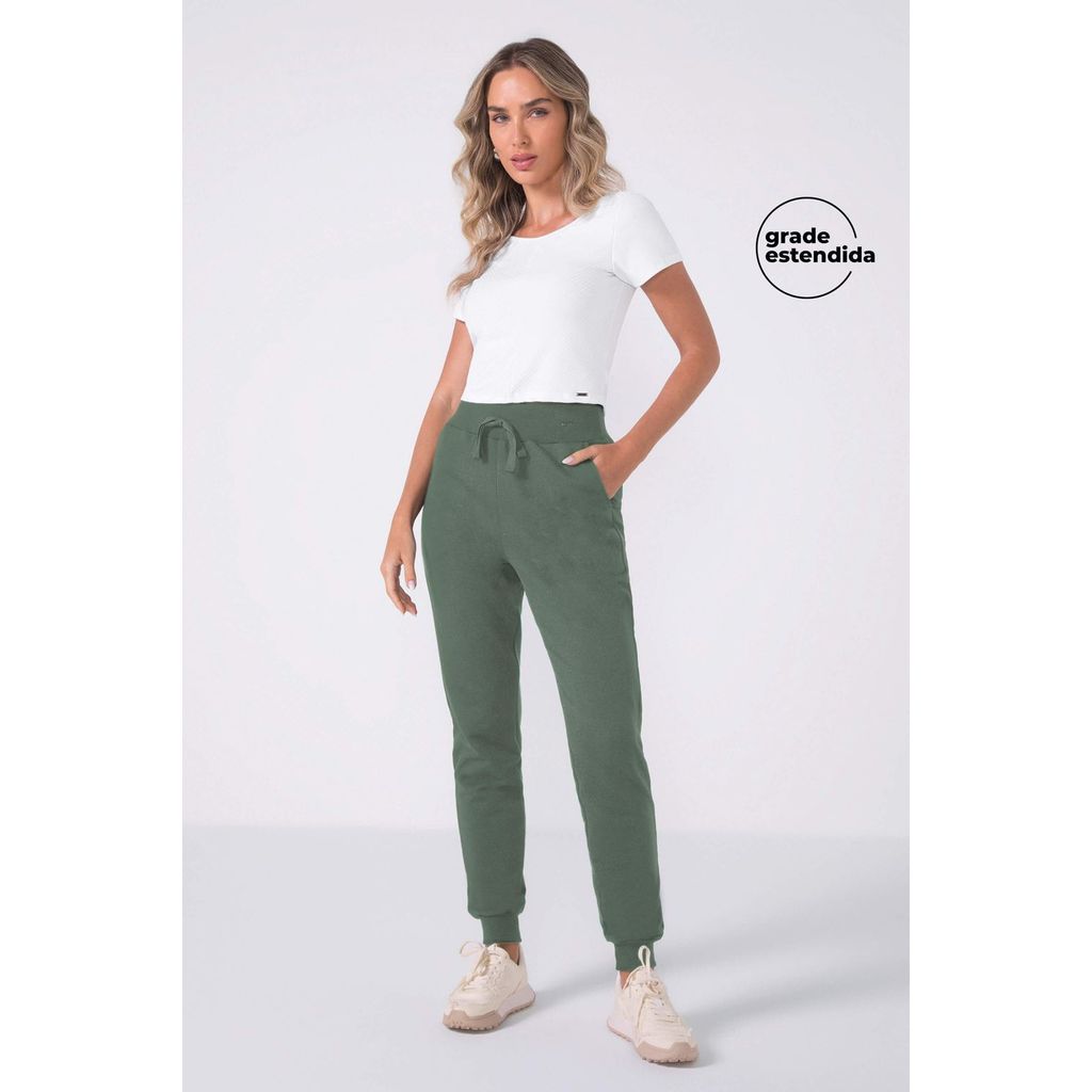 Calça Feminina Moletom Com Cordão Marialícia Verde