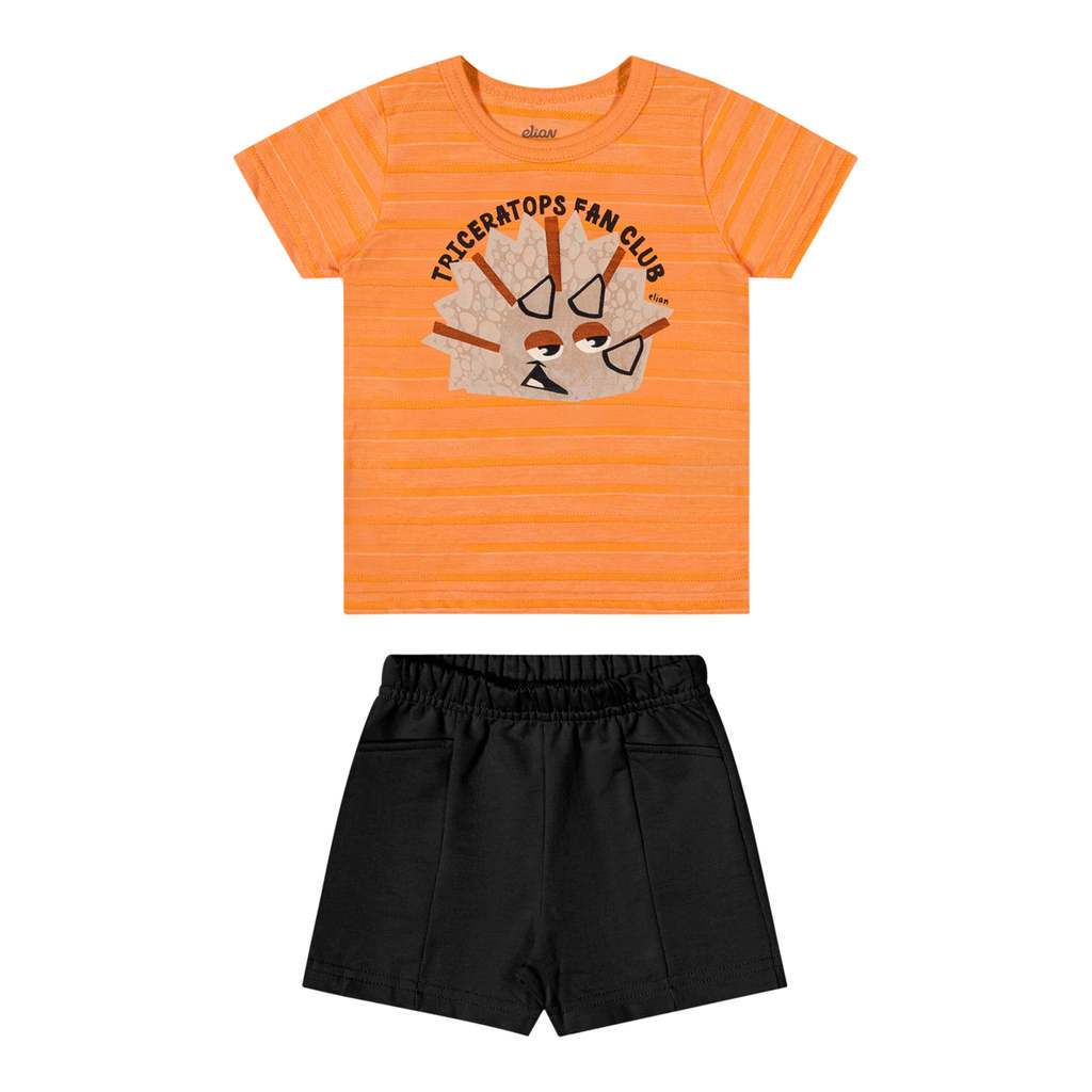 Conjunto Bebê Menino Dino Com Puff Elian Laranja