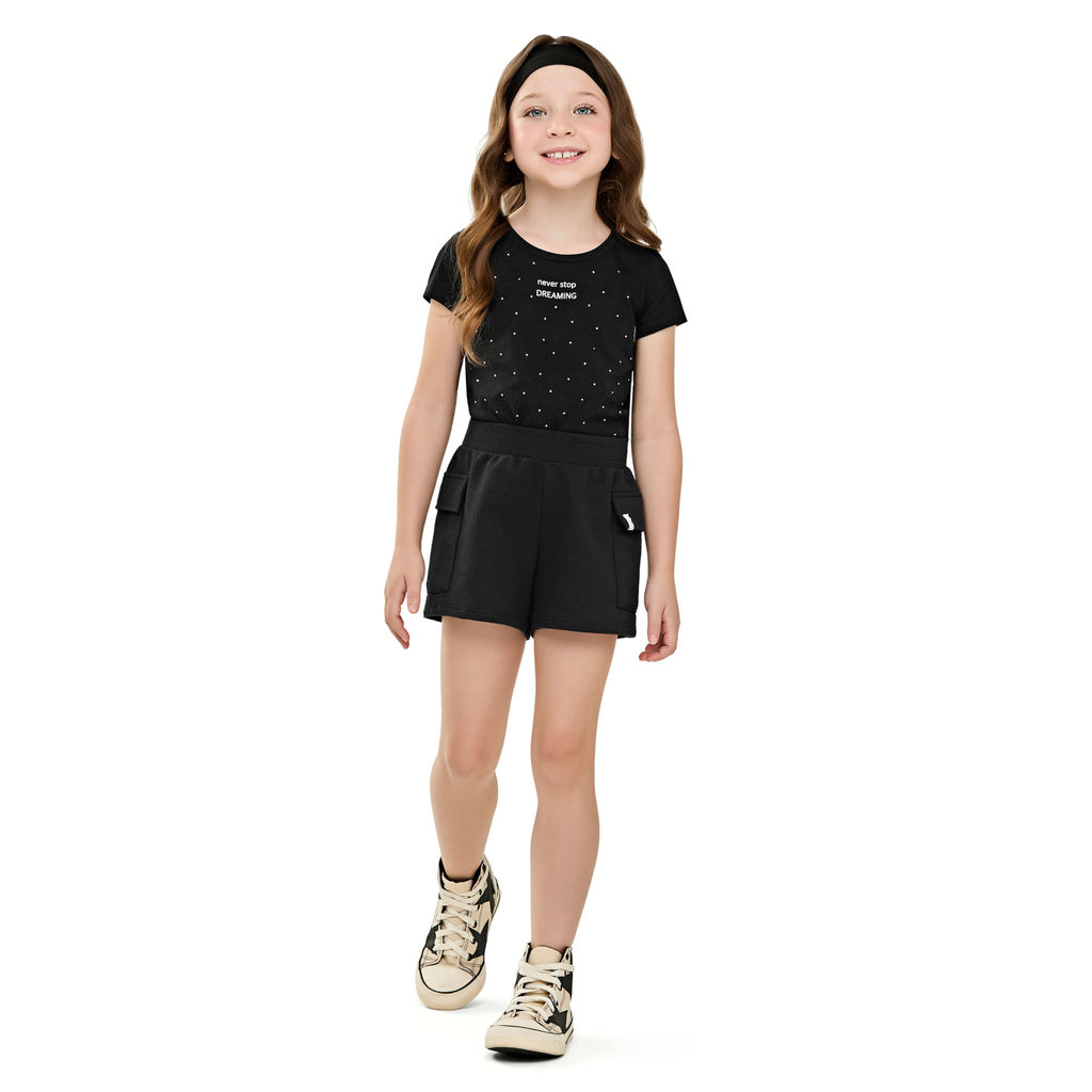 Conjunto Curto Infantil Menina Com Strass Elian Preto