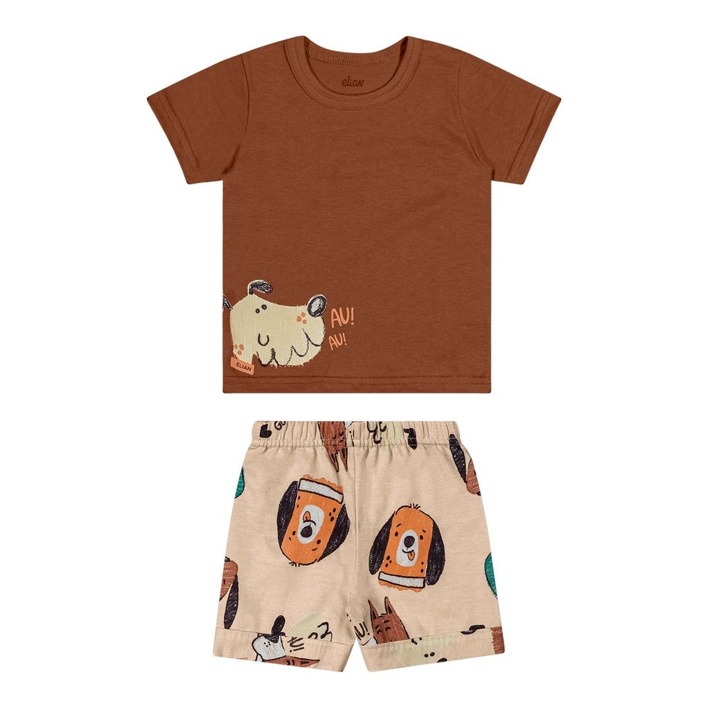 Conjunto Bebê Menino Curto Cachorrinhos Elian Marrom