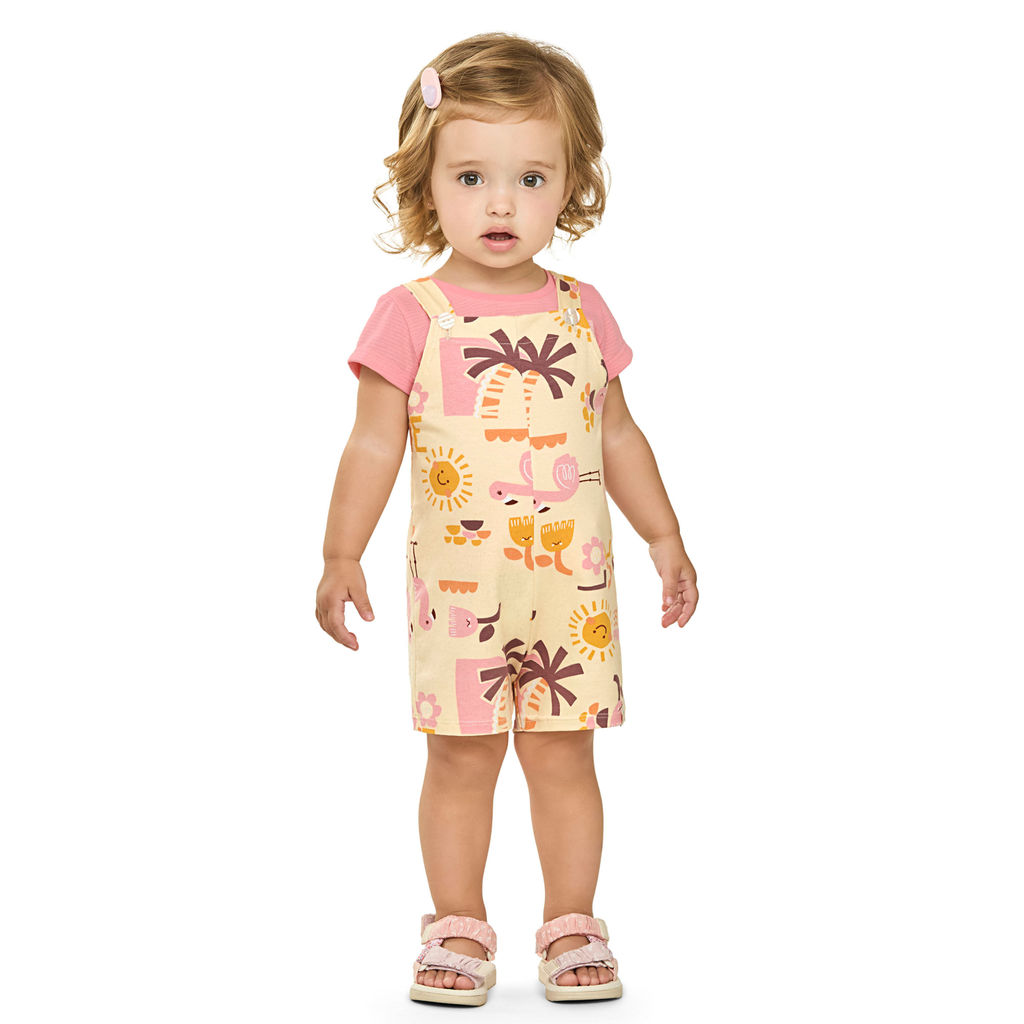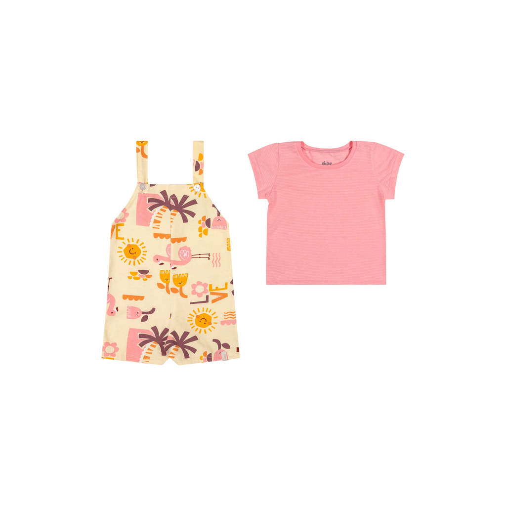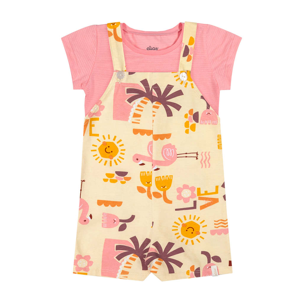 Conjunto Bebê Menina Tropical Com Jardineira Elian Rosa