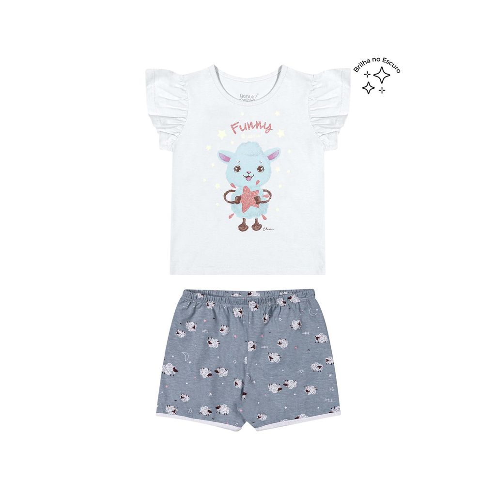 Pijama Infantil Menina Ovelhinha Brilha no Escuro Elian Branco