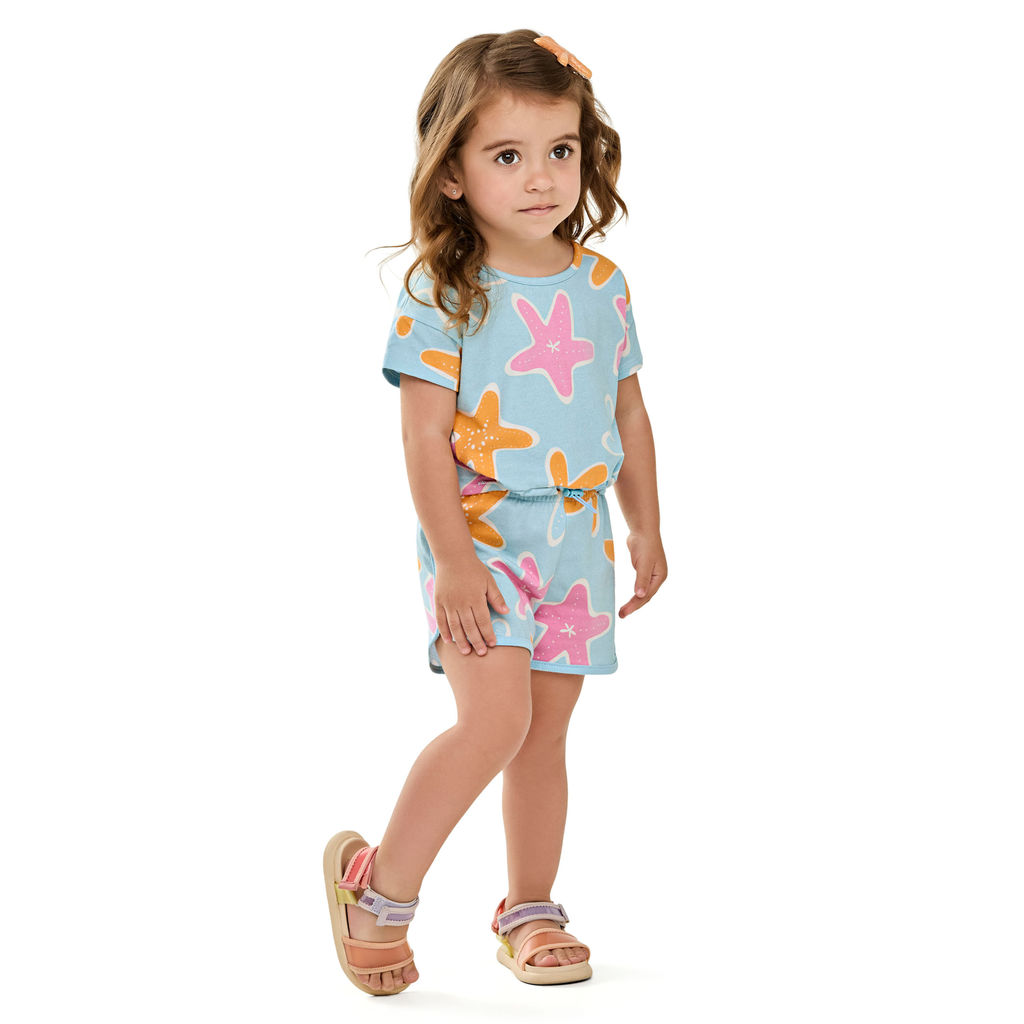 Conjunto Curto Infantil Menina Estrela-do-Mar Elian Azul