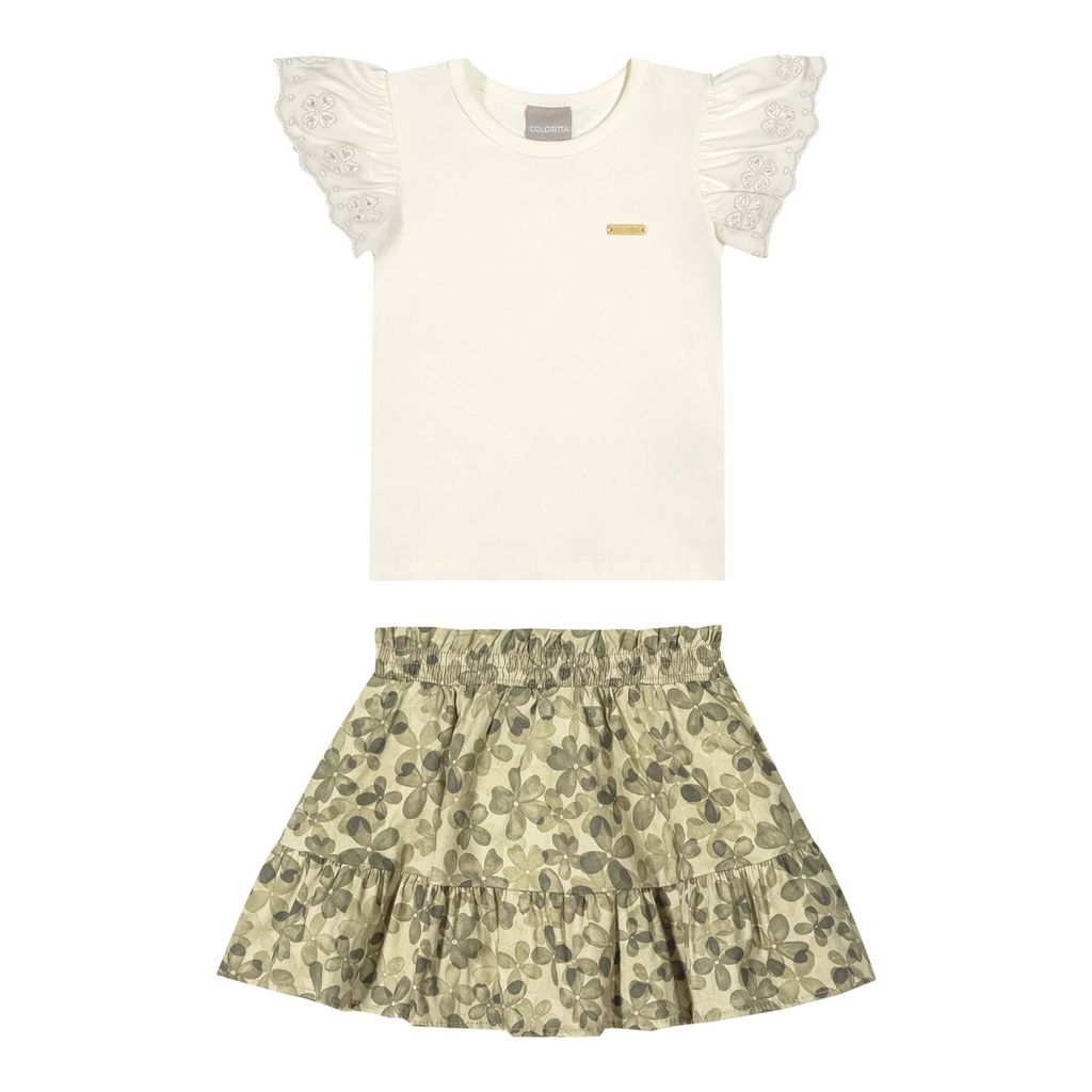 Conjunto Infantil Menina Floral Bordado Colorittá Bege
