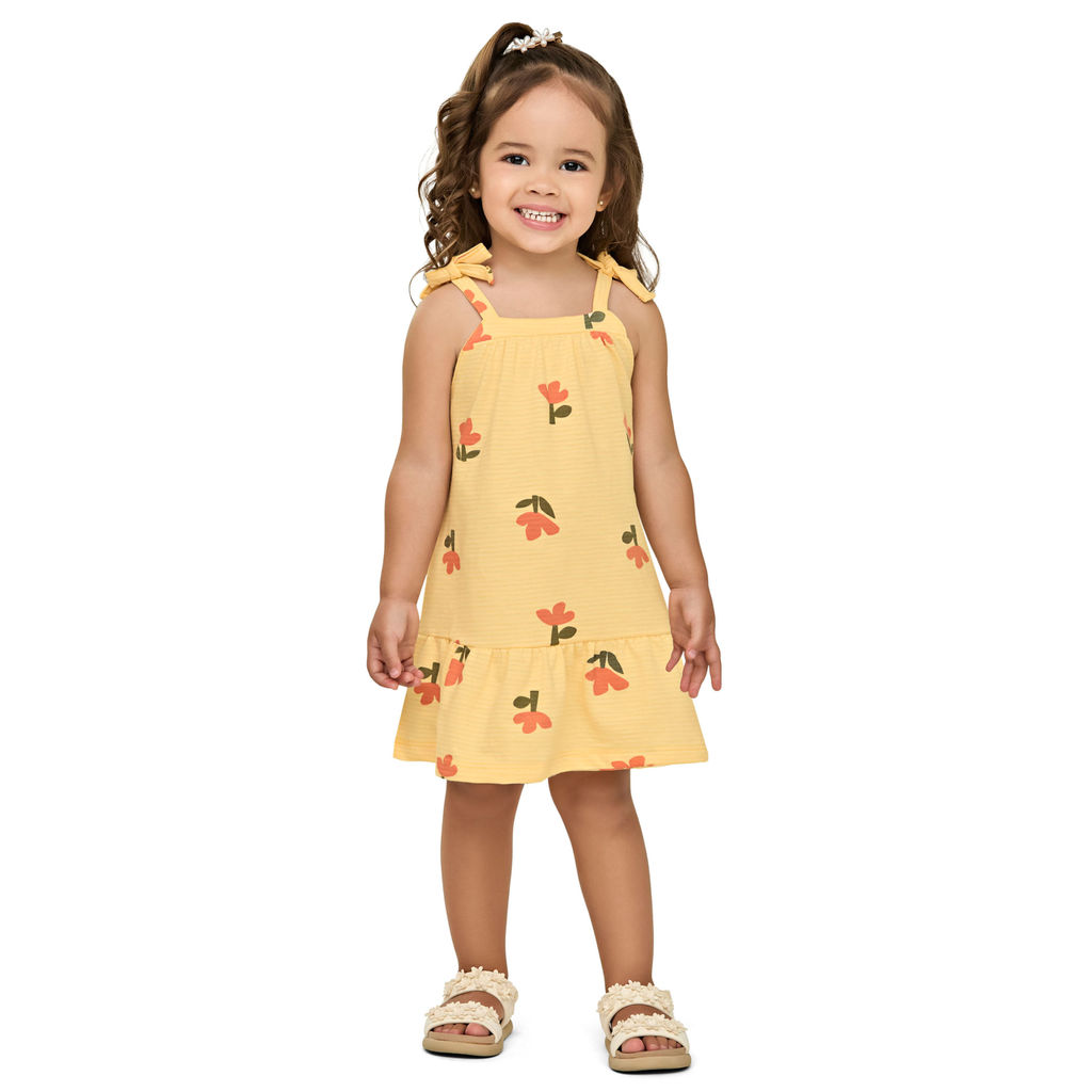 Vestido Infantil Menina Floral Flamê Elian Amarelo