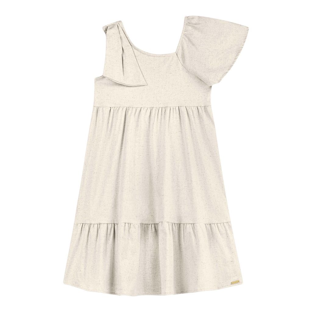 Vestido Infantil Menina Ombro Com Laço Colorittá Bege