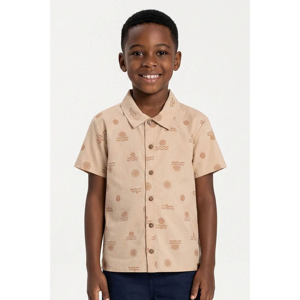 Camisa Manga Curta Infantil Menino Tropical Elian Bege
