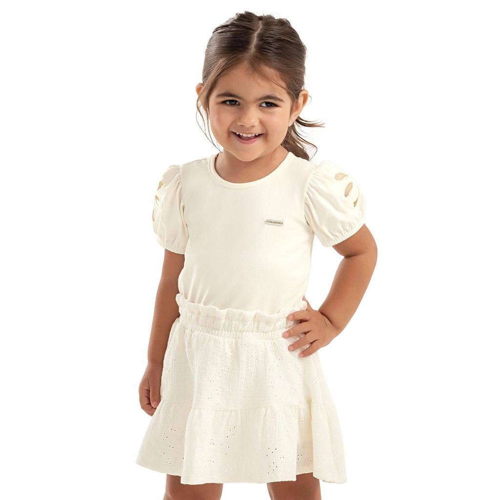 Conjunto Infantil Menina Bordado Vazado Colorittá Bege