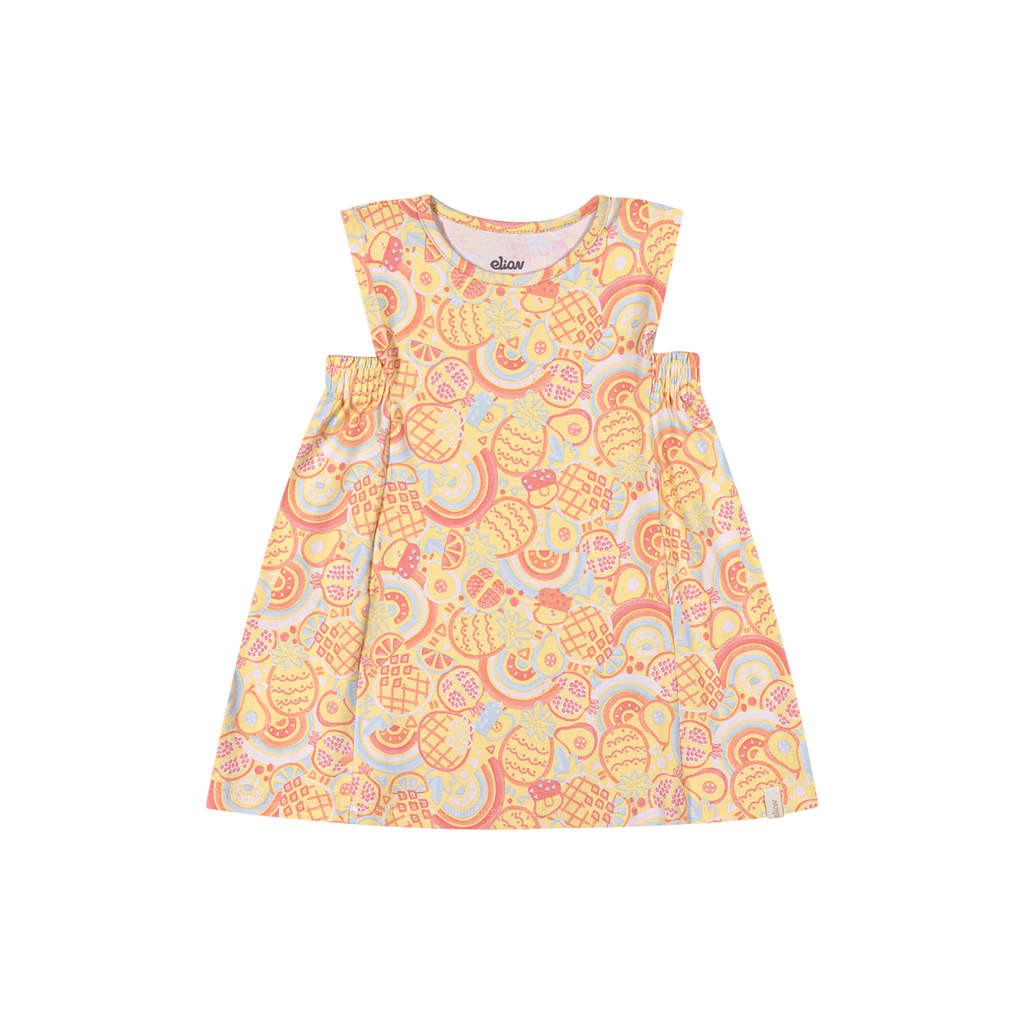 Vestido Bebê Menina Manga Curta Frutinhas Elian Amarelo