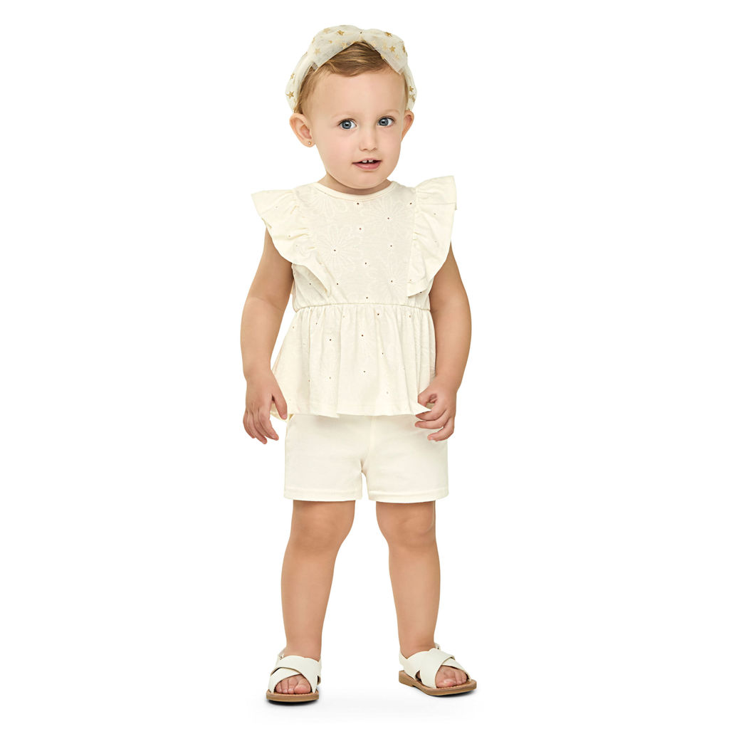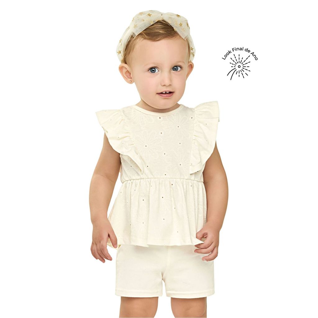 Conjunto Bebê Menina Floral Devorê Elian Bege