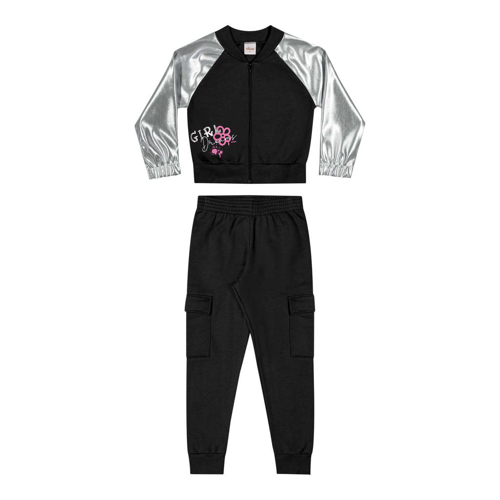 Conjunto Infantil Menina Mangas Holográficas Elian Preto