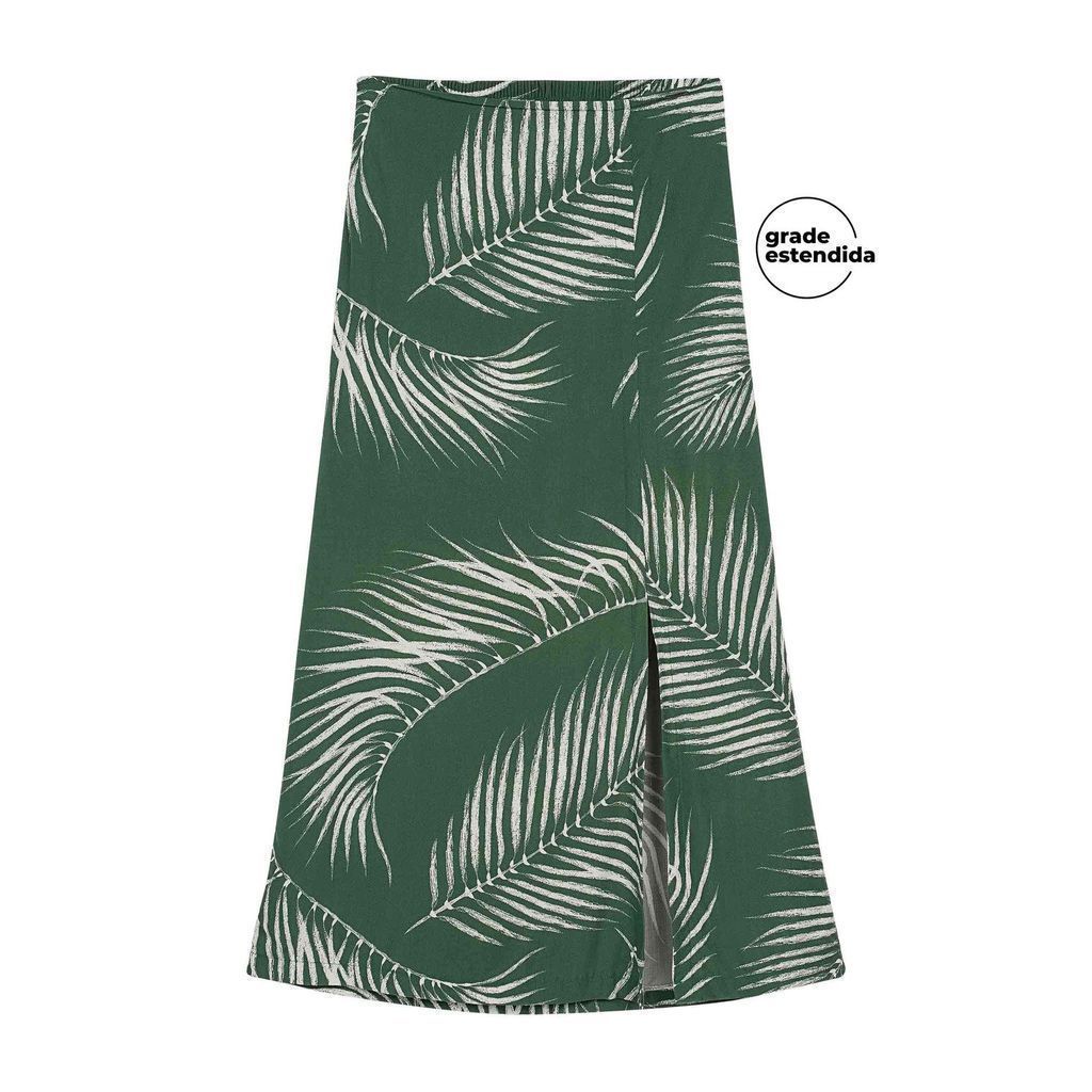 Saia Feminina Midi Floral Com Fenda Marialícia Verde