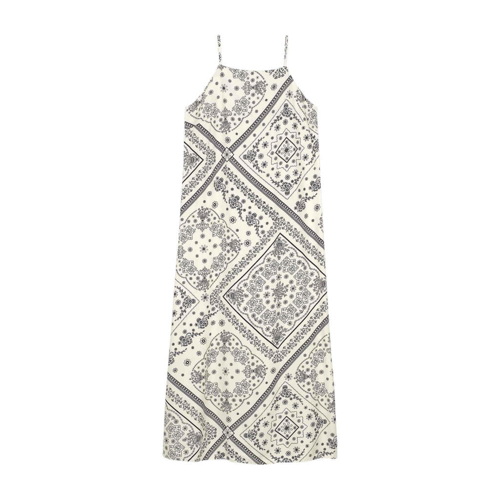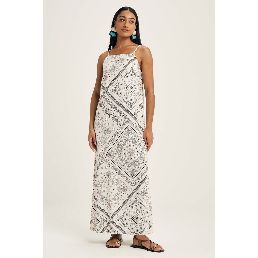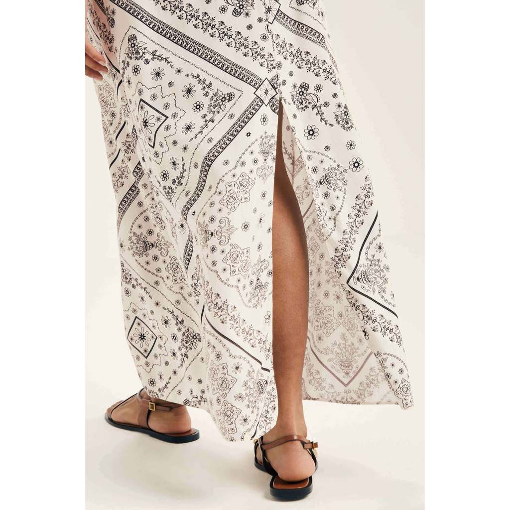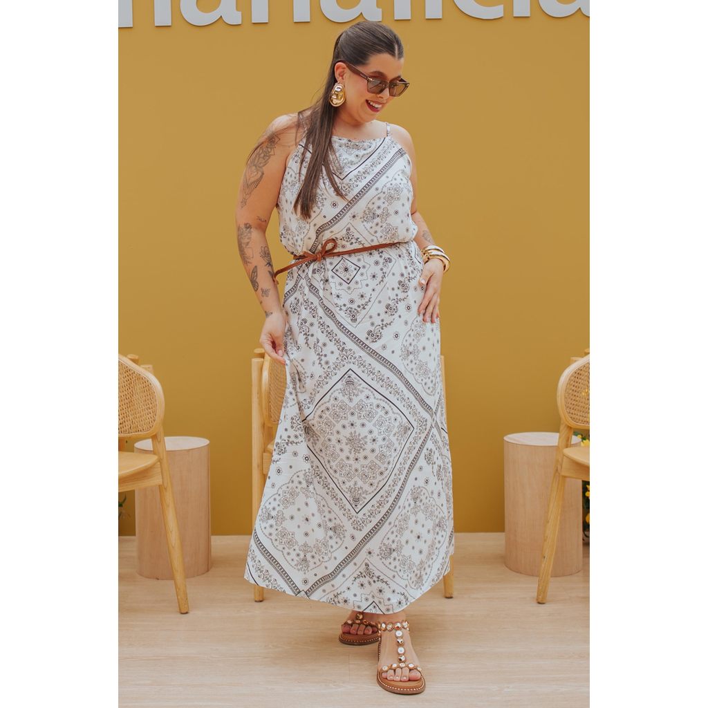 Vestido Feminino Midi Longo Estampado Marialícia Bege