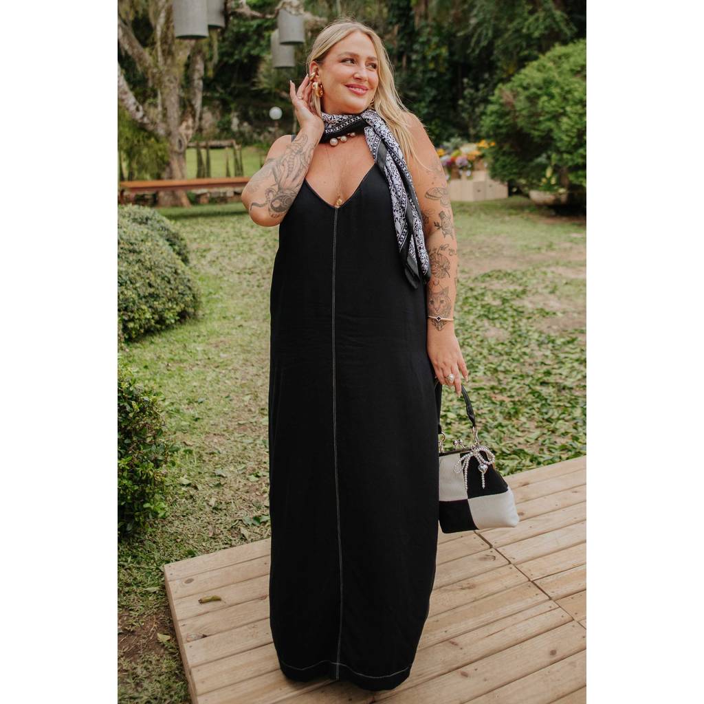 Vestido Midi Feminino Minimalista Marialícia Preto