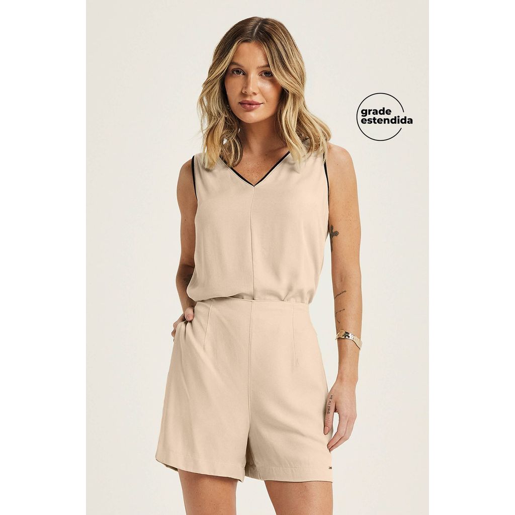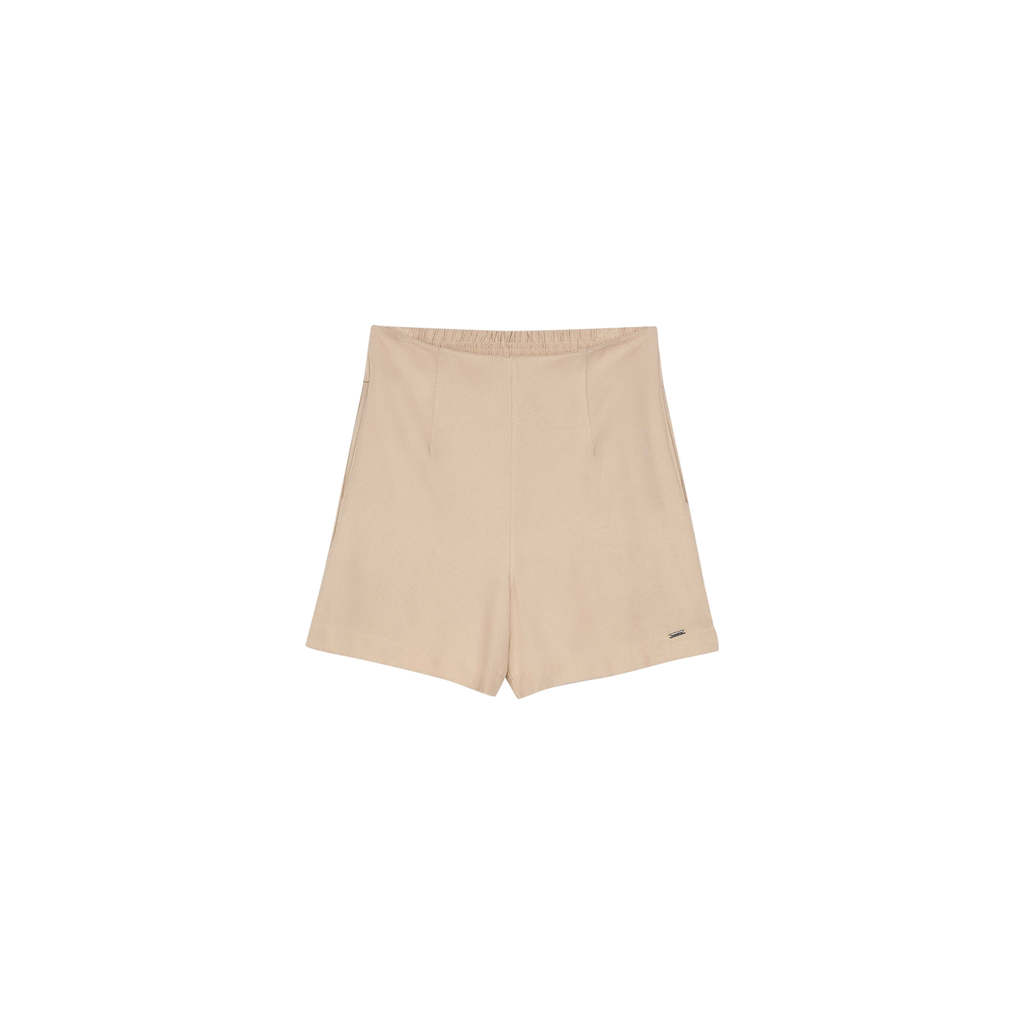 Short Feminino Alfaiataria Creponado Marialícia Bege