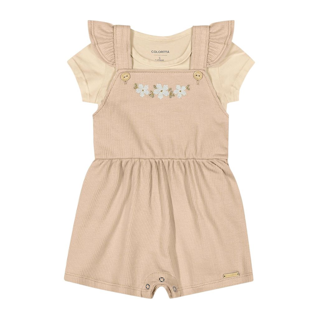 Conjunto Bebê Menina Jardineira Floral Colorittá Bege