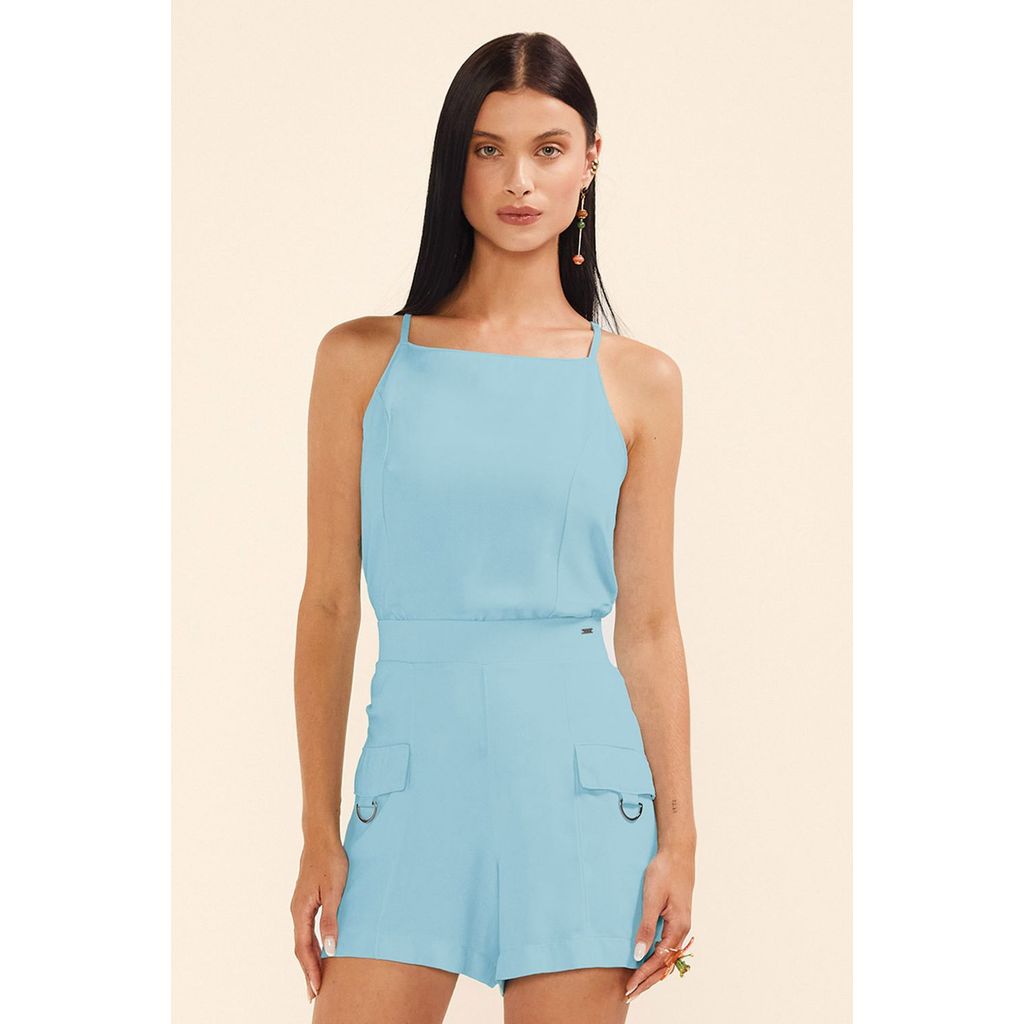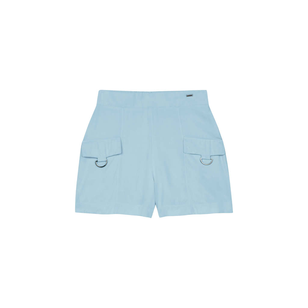 Short Feminino Bolsos Com Fivela Marialícia Azul