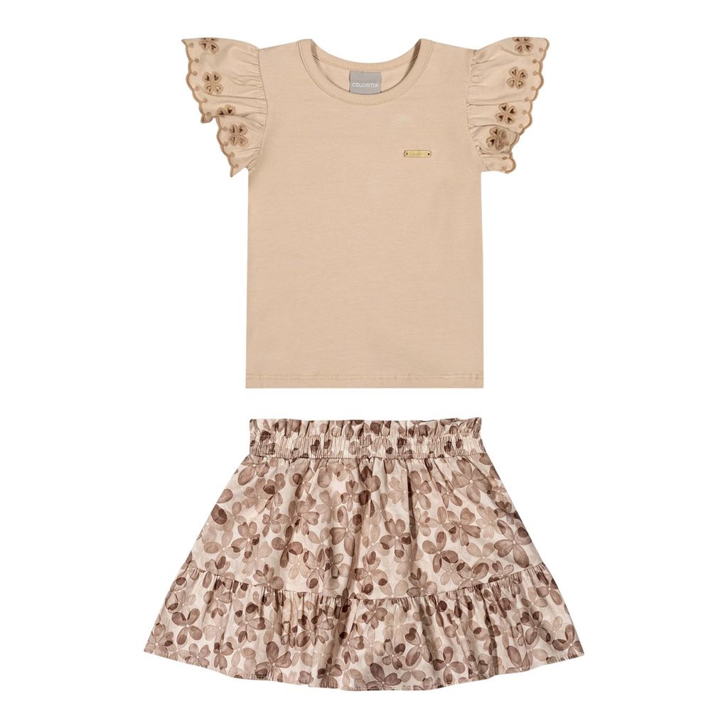 Conjunto Infantil Menina Floral Bordado Colorittá Marrom