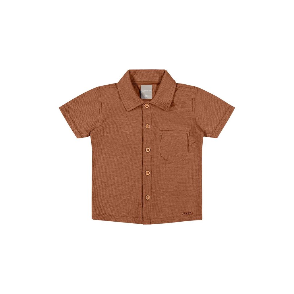 Camisa Infantil Menino Curta Com Textura Colorittá Marrom