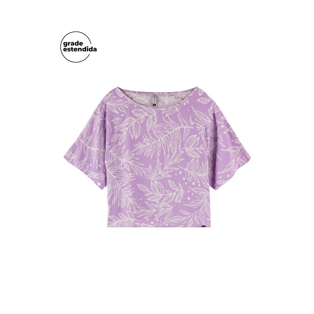Blusa Feminina Estampada Folhagens com Recorte Mangas Marialícia Lilás