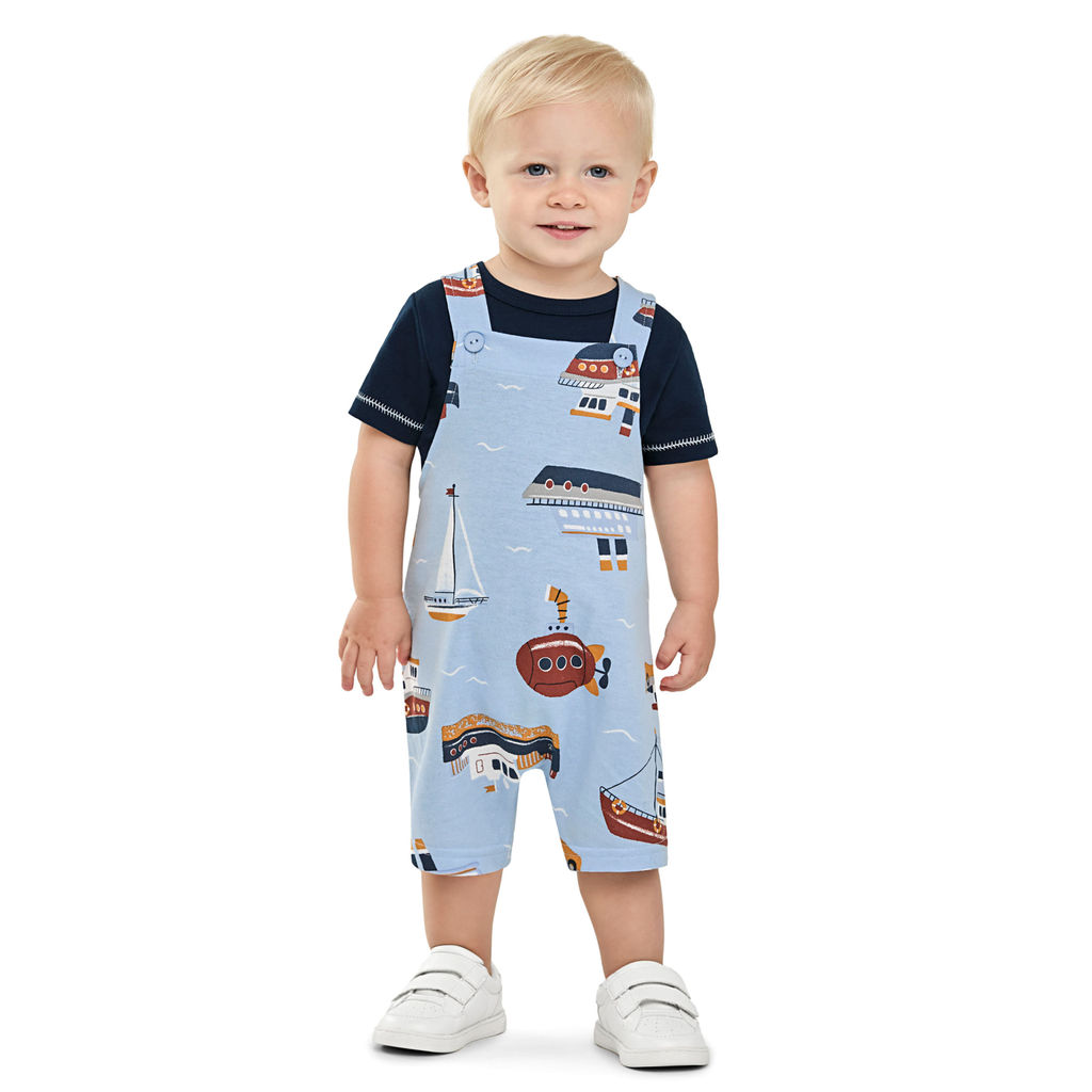 Conjunto Bebê Menino Jardineira Barcos Elian Azul