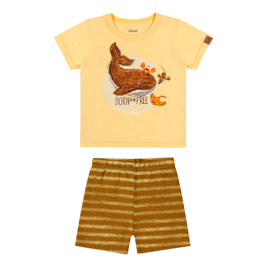 Conjunto Bebê Menino Desenho Baleia Elian Amarelo