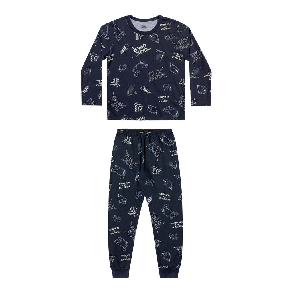 Pijama Longo Infantil Menino Gamer Elian Azul