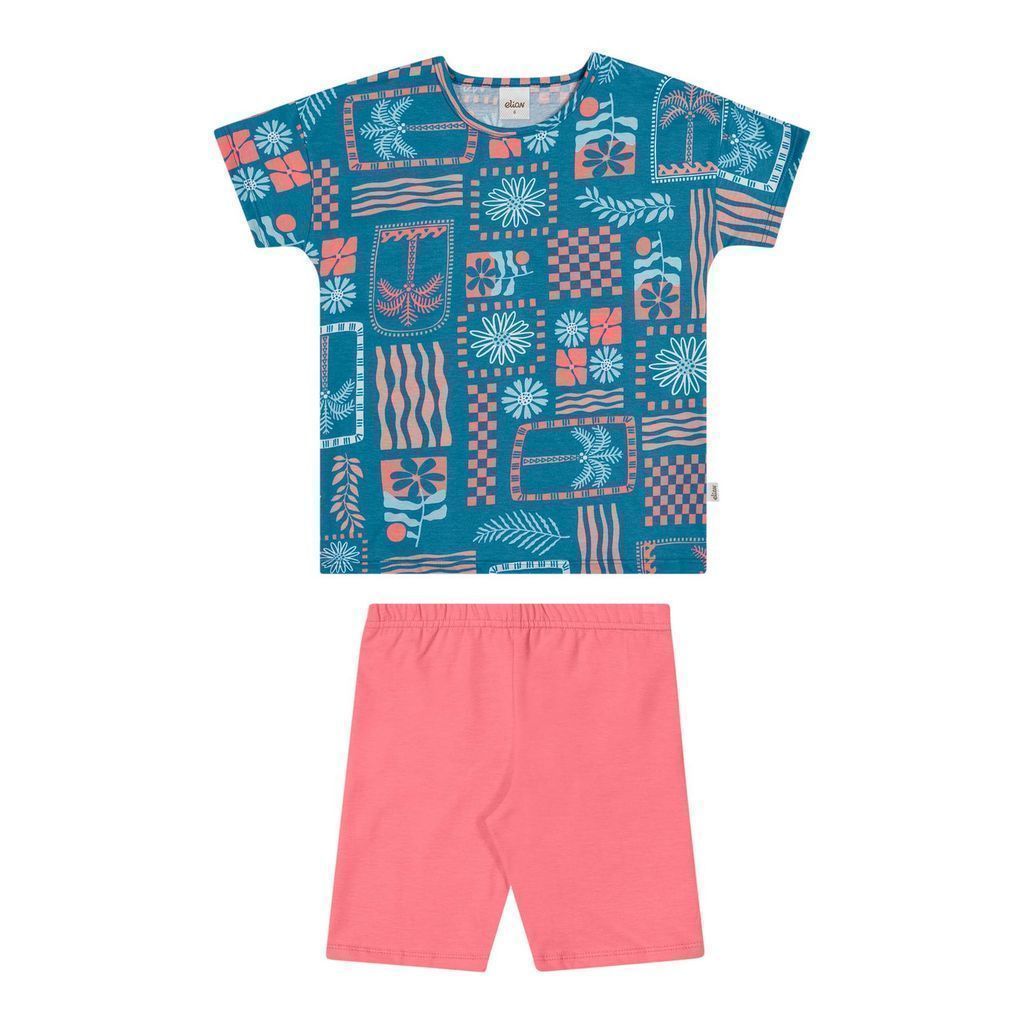 Conjunto Infantil Menina Tropical Geométrico Elian Azul