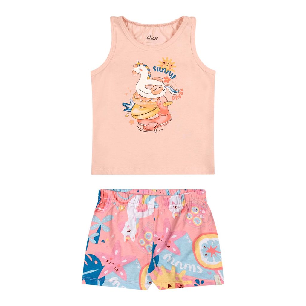 Conjunto Bebê Menina Meia Malha Curto Elian Rosa