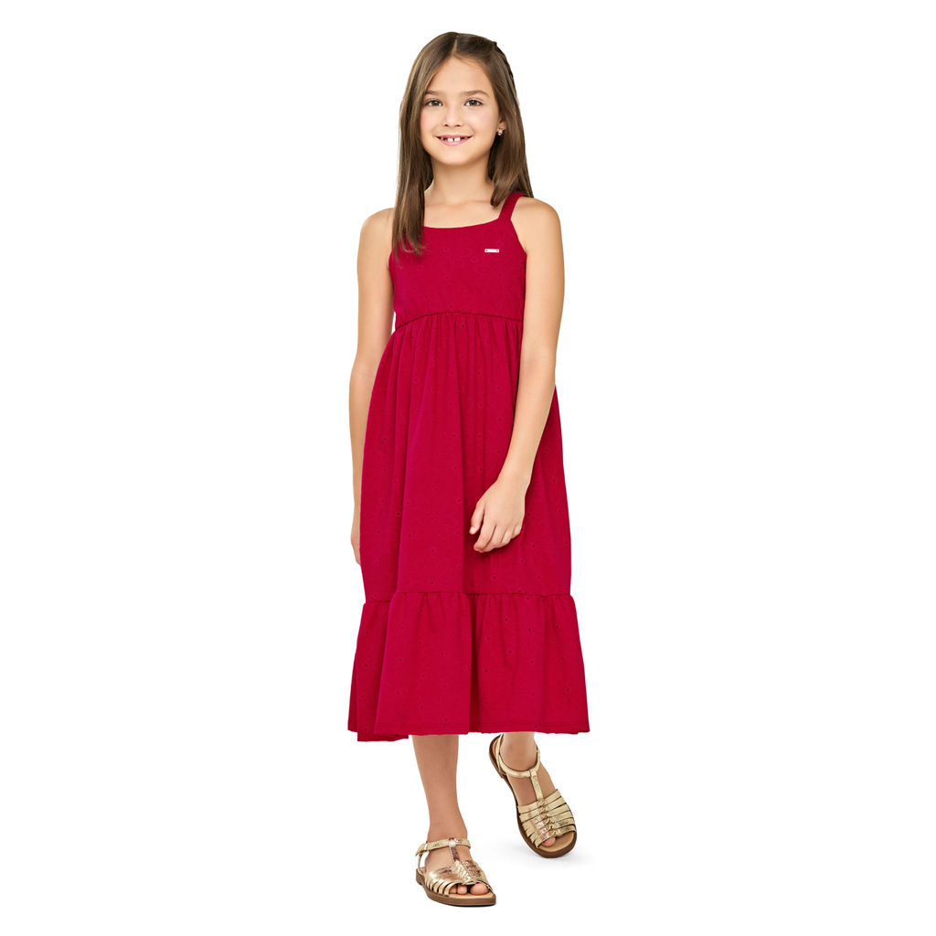 Vestido Midi Infantil Menina Devorê Floral Elian Vermelho