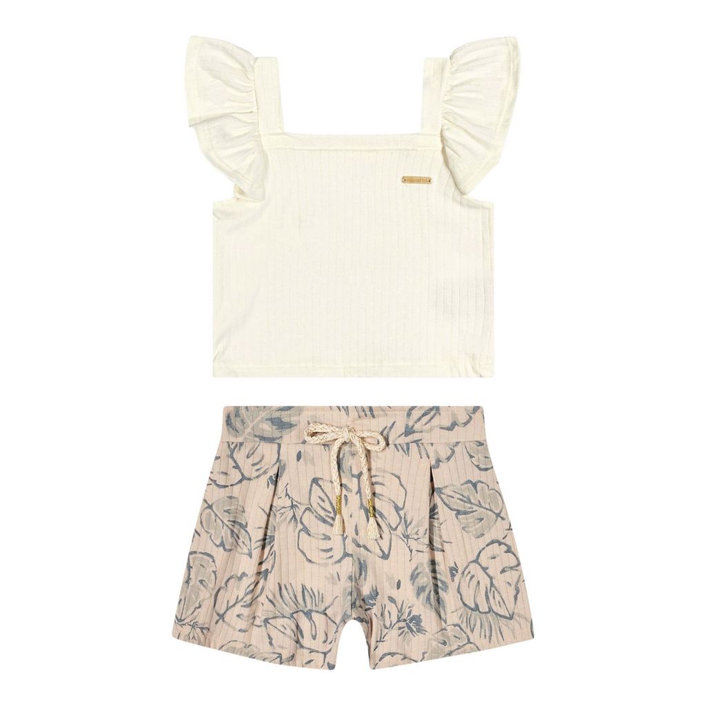 Conjunto Infantil Menina Canelado Folhas Colorittá Bege
