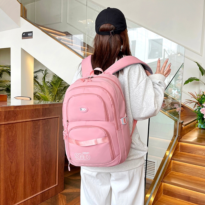 Mochila escola Feminina de nylon Impermeável com bolsa anti-furto na verso de mochila
