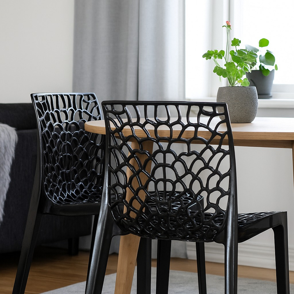 4 Unidades Kit Empilhável Cor Preto Sala Cadeiras Gruvyer Cozinha