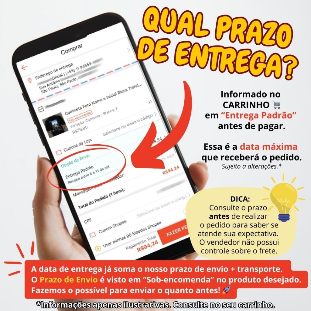 Sob encomenda: envio após 4 dias da compra