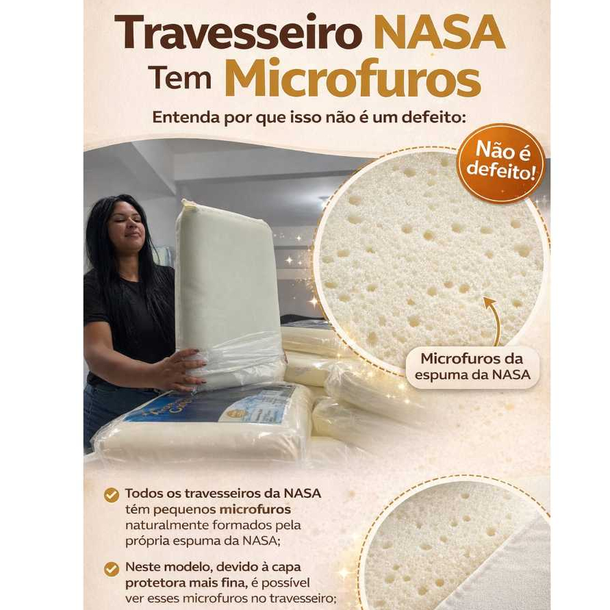 TRAVESSEIRO NASA COMFORT 01 PÇ VISCOELASTICO ANTIALERGICO 10CM ALT MACIO
