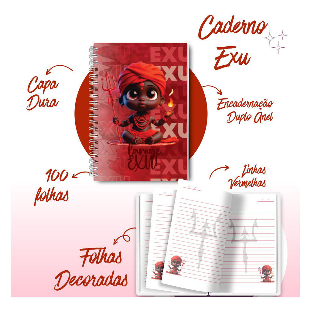 Caderno Capa Dura A5 100 Folhas Pautado Orixás Iemanjá Oxala Exu Ossain Umbanda